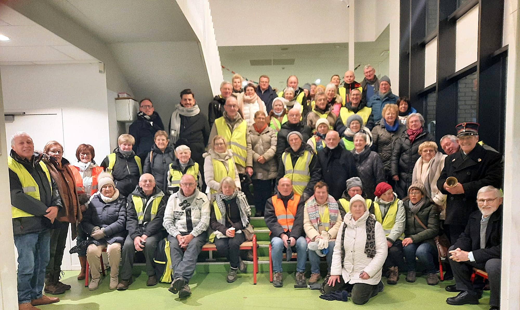 Groepsfoto van de wandelaars - Halte in de Spanjeschool-Roeselare