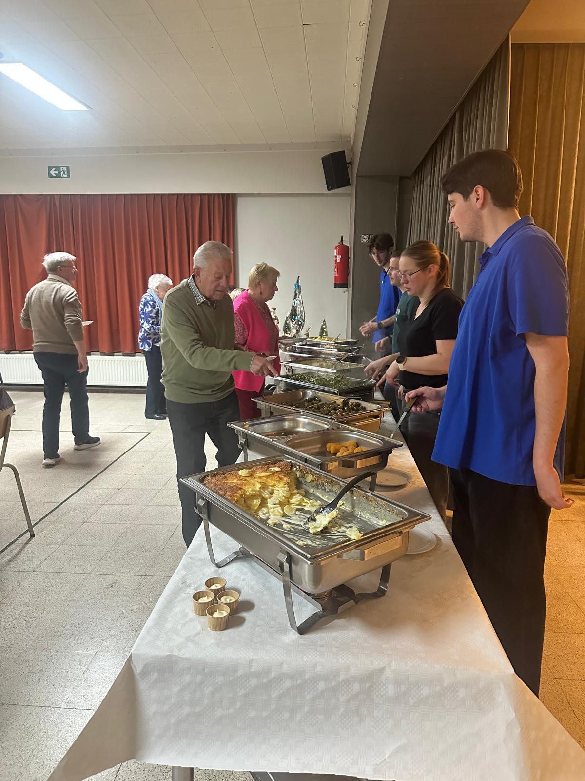 Rond 17:30 uur schuiven we aan tafel voor een heerlijk warm buffet. Afsluiten doen we natuurlijk met een dessertbordje en een kop koffie of thee met ruim de tijd om bij te kletsen.