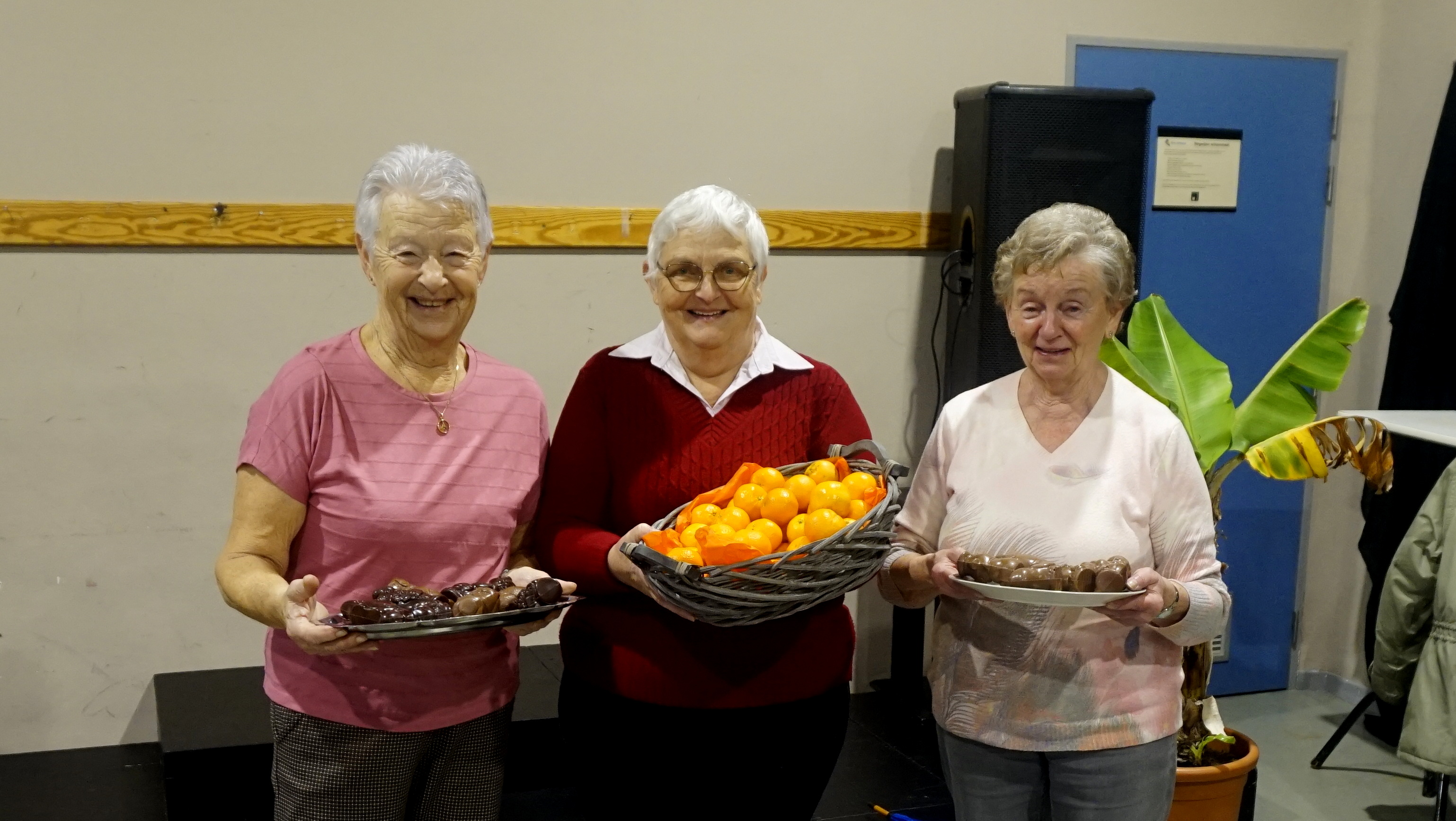 chocolade melk en een chocolade postuurtje en mandarijntje. Ook niet wandelaars zijn welkom.