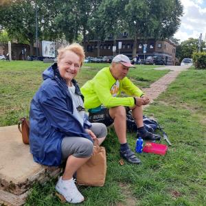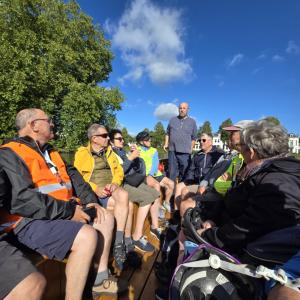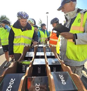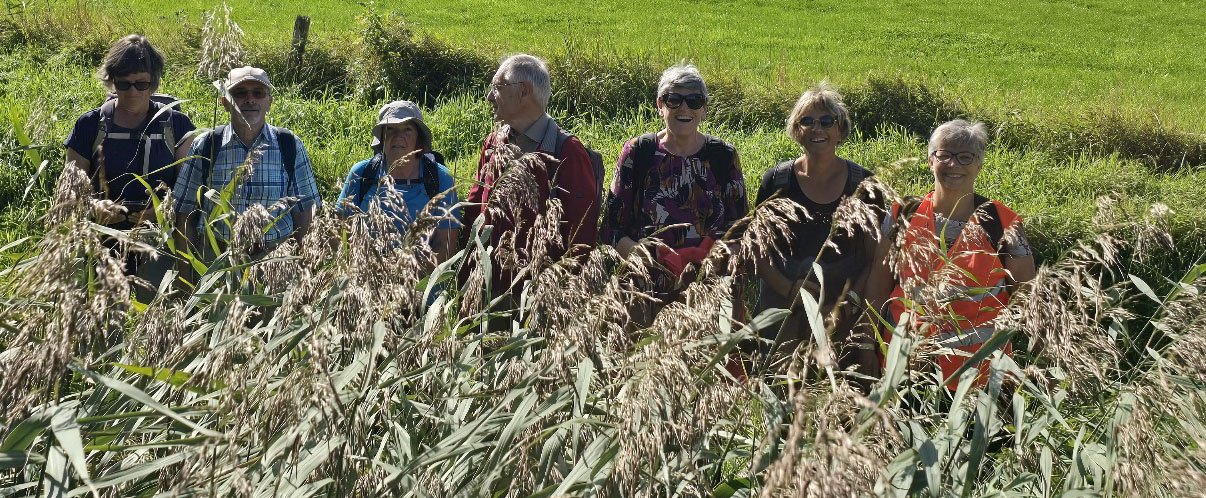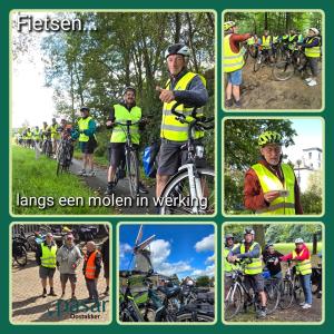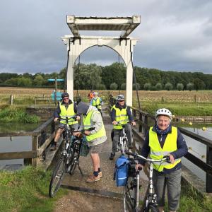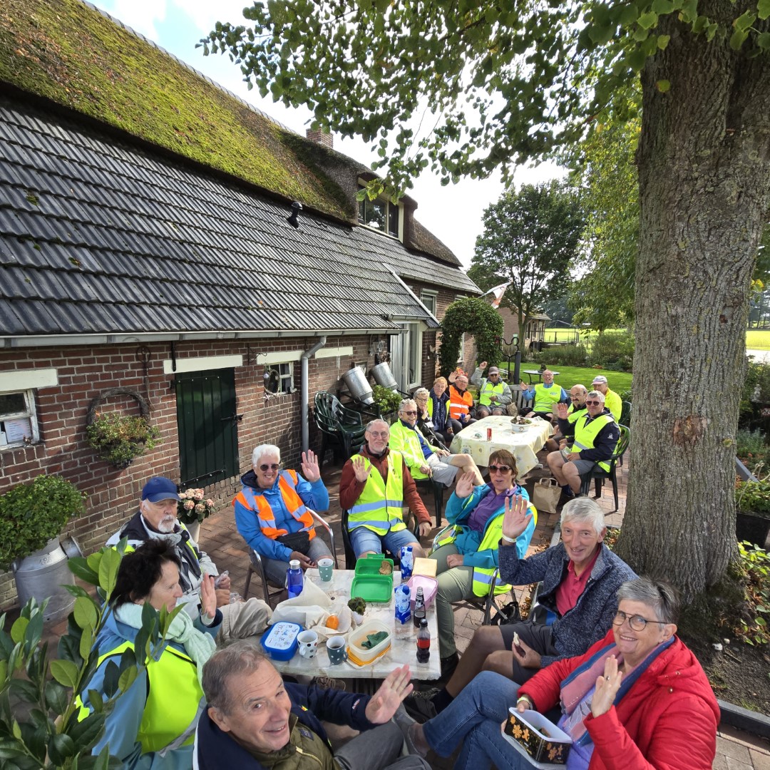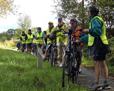 Foto's van deelnemers aan de wandelingen en fietsers.
