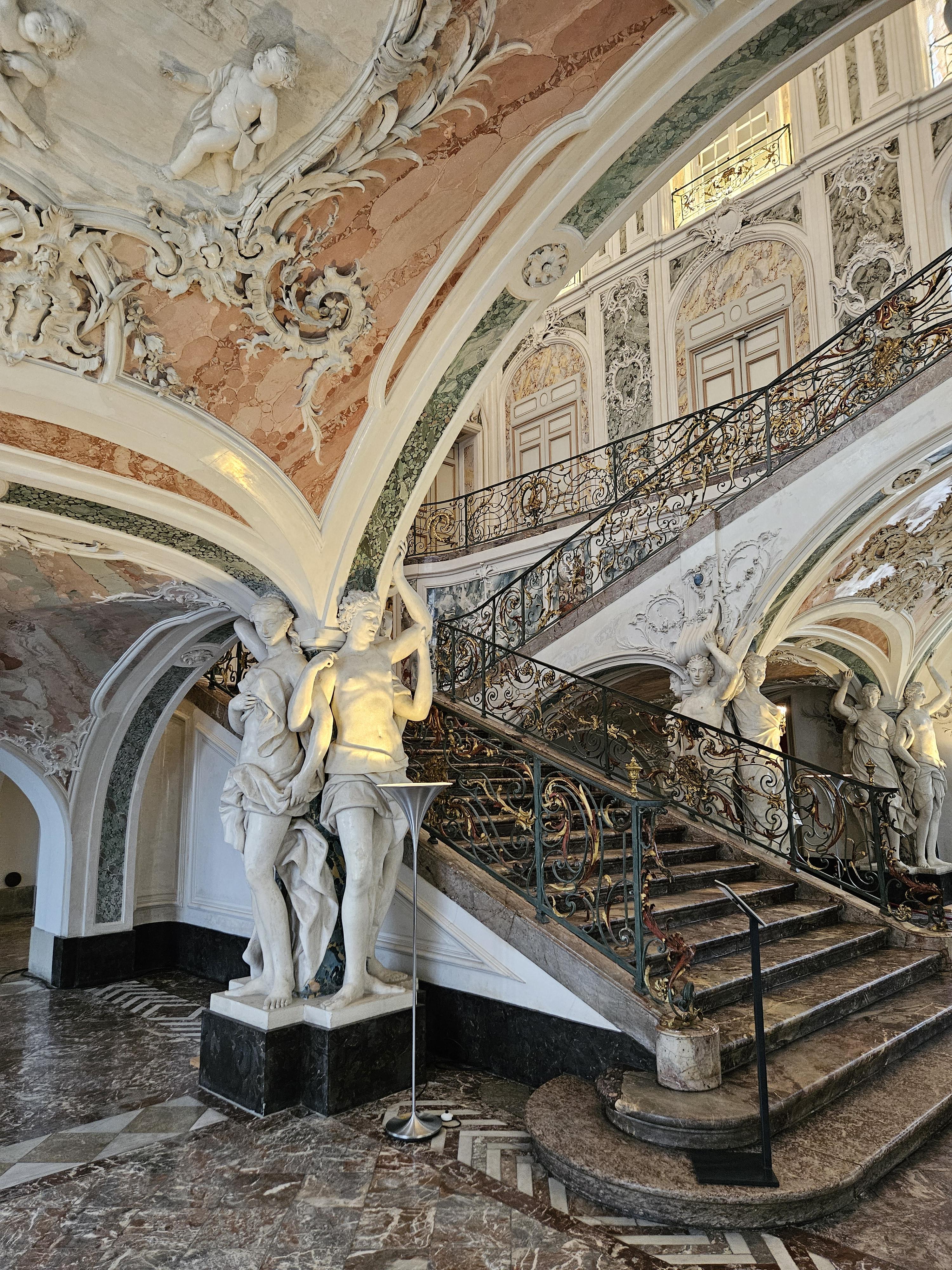 De bekendste keurvorst van Keulen, dat was Clemens August I. De Keulse monarch liet aan het begin van de 18de eeuw net buiten Bonn een gigantisch zomerpaleis optrekken met de naam Slot Augustburg, Unesco-werelderfgoed sinds 1984. Het gigantische complex in rococostijl heeft meer dan 200 kamers, al werden er maar een vijftiental voltooid. Op de bovenverdieping kan je een aantal van die kamers bezoeken. Om daar te geraken wandel je naar boven over een enorme marmeren trap. In de impressionante trappenzaal vind je heel wat standbeelden van allegorische figuren en andere decoratie in stucco. Zelfs het plafond is gedecoreerd met stukwerk en fresco’s. Centraal in de trappenzaal vind je de bouwheer, keurvorst Clemens August I, al zou hij nooit kunnen genieten van een afgewerkte residentie. Wat verderop op het domein is er ook Slot Falkenlust, een kleiner jachtpaviljoen.