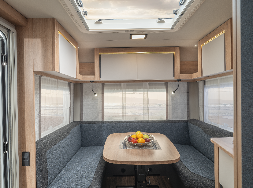 Tot de nieuwe standaarduitrusting behoren onder meer een zelfregelende KNOTT-rem, een steunwiel met geïntegreerde gewichtsindicator, een grote dakluik van 96 x 65 cm, en een raam in de toiletruimte met hor en verduistering. De 25-liter afvaltank op wieltjes maakt het gebruik nog makkelijker. Kleine extra’s zoals wielkappen in KNAUS-design en de robuuste instapdeur maken het geheel af.