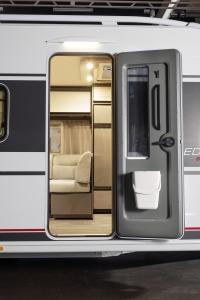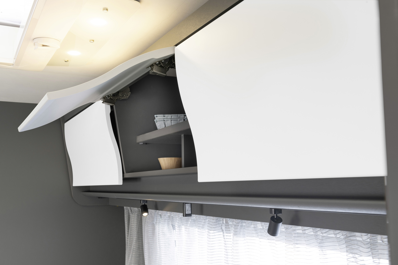Functionele details krijgen een eigentijdse update met zwarte afwerkingen op kranen, schakelaars, douchearmaturen en andere elementen. De keuken is geoptimaliseerd met robuuste pannendragers en glasafdekkingen die de kookplaat en spoelbak volledig beschermen. Daarnaast biedt de caravan een modern verlichtingsconcept met drie niveaus: van sfeervolle indirecte LED-verlichting boven de kasten tot subtiele vloerverlichting.