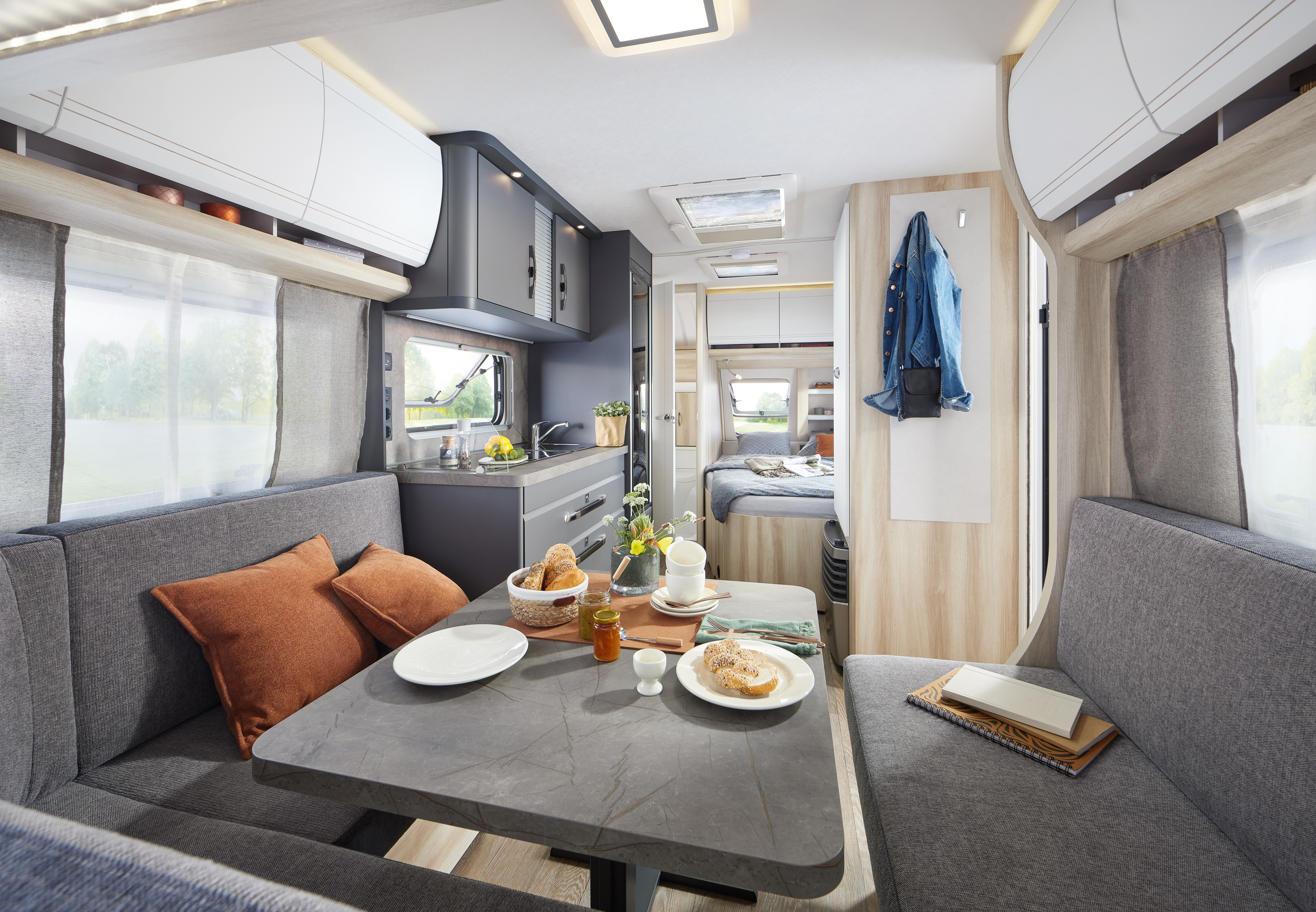 De De Luxe- en Ontour-reeksen krijgen bovendien de multifunctionele keukenachterwand die al in andere Hobby-series werd toegepast. Deze heeft een geïntegreerde hor en verduisteringsrol, 230V-stopcontacten en USB A/C-aansluitingen – ideaal om tijdens het koken meerdere apparaten te gebruiken of op te laden.