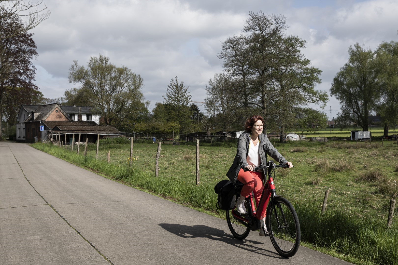 Met een blij gemoed trappen we verder de asfaltweg af, een stukje bos door en dan laat ik fotografe Siska een heel klein eindje terugrijden om een stop in te bouwen bij Kruiskensberg in Herenthout. H meter naast de route, maar is absoluut een pauze waard: niet alleen kan je doorheen het tien hectare grote wandel- en speelbos stuiteren, om dan uit te komen bij de vroegere overzet in brasserie Het Schipke aan de Nete – ik herinner me nog hoe in vervlogen tijden daar een dametje je enkel bier of soep serveerde bij de kachel - maar ook voor je zielenheil kan je hier terecht. In de dertiende eeuw genas een herder die hier van een bron dronk. Ter ere van dat wonder werden er in de negentiende eeuw een kapel gebouwd en een kruistocht georganiseerd. Elk jaar is het hier nog ‘Kruiskensmarkt’, al vragen de vele geknoopte zakdoeken aan de kapel niet meer om genezing maar wel om… een lief! Hebben wij niet nodig, dus we vervolgen onze weg op de Diamantroute.