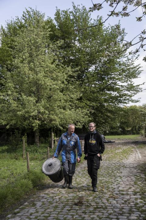 Wim en Jef werken wekelijks op de hoeve. Jef vertelde ons toch dat hij hier heel graag werkt, al veel geleerd heeft en veel vrijheid en verantwoordelijkheid krijgt. Ondertussen werkt hij ook bij Veldvolk, in de cafetaria. Alleen maar blije en fiere gezichten hier!