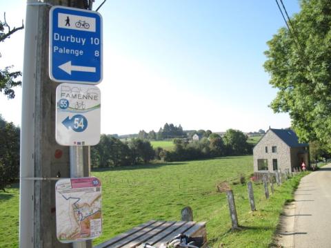 We herpakken onszelf en de ecoknop, trappen verder tot het toeristische Durbuy. De Waalse routebordjes zijn wat kleiner dan de Vlaamse, maar wie uitkijkt vindt probleemloos de weg.