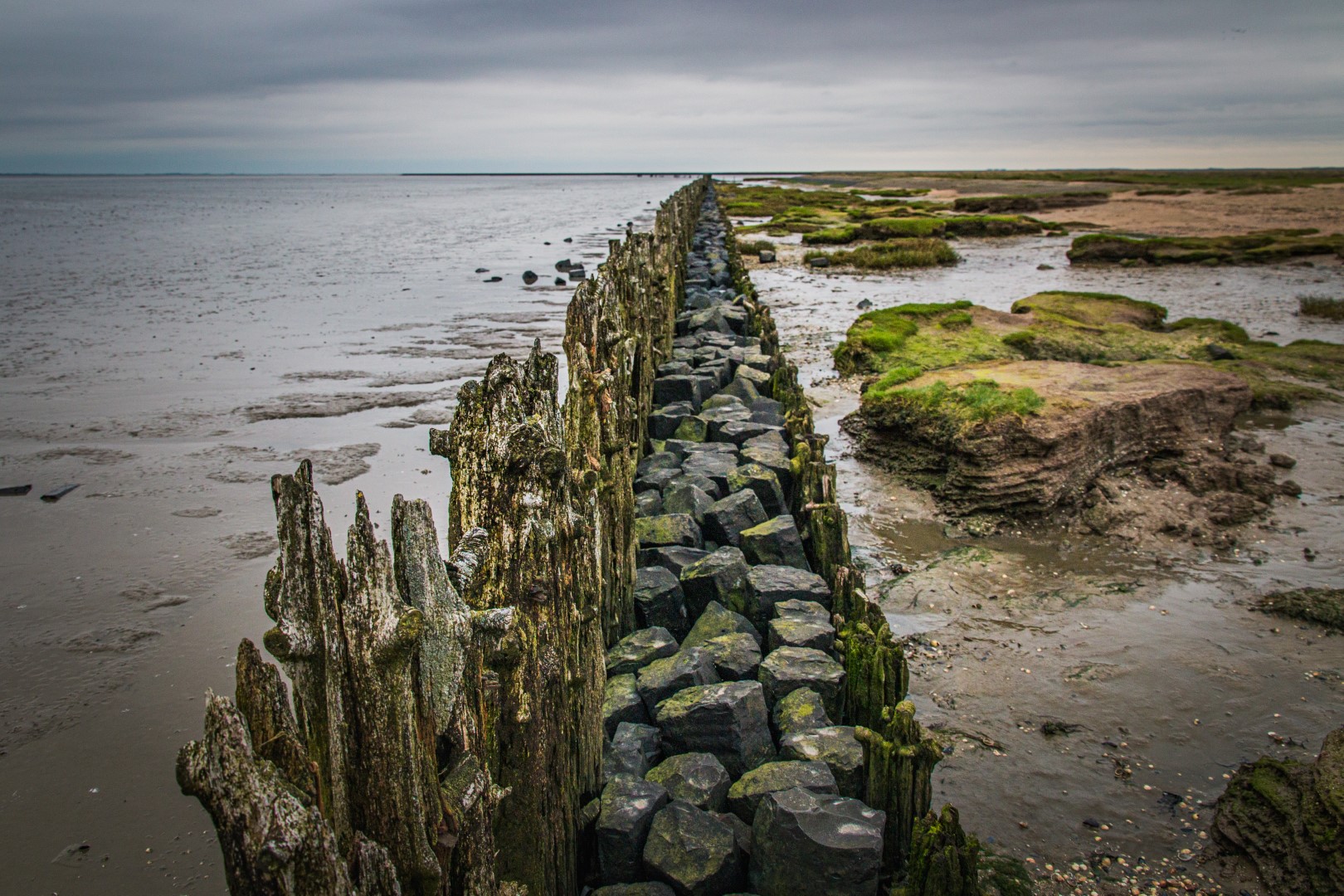 Ik wandel over een smal paadje naar de pier. Ik moet goed opletten, want bij de minste improvisatie over wat een goede weg zou kunnen zijn, zak ik weg in de zachte, grijze modder. ‘Dan toch een beetje wadlopen’, denk ik bij mezelf. Op de geasfalteerde pier gaat het een stuk makkelijker. Bonte strandlopers lopen schichtig van links naar rechts op het wad. Af en toe stoppen ze plots om met hun snavel in het slib te peuteren. Steenlopers doen hun naam alle eer aan en wippen tussen de stenen van de pier.