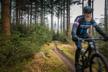 Jan kent ieder stukje van het Drents-Friese Wold als zijn broekzak. ‘Ik heb mijn hele jeugd in dit gebied doorgebracht met fietsen’, vertelt hij. ‘En dan vooral racen over de smalle single tracks doorheen het bos.’ Het lijkt dat het kind na al die jaren nog niet uit Jan verdwenen is, als hij enkele vreugdekreten laat horen bij de eerste snelle afdaling. Iedere boomwortel of overhangende tak weet hij liggen en fietst er soepel omheen. ‘Nu ben ik volwassen, maar eigenlijk wil ik nog steeds spelen’, geeft Jan toe. ‘Ik moest alleen een andere manier vinden.’ En die lijkt hij wel gevonden te hebben, bedenk ik, als ik mijn uiterste best doe om hem bij te houden over de smalle kronkelbaantjes. De modder vliegt me rond de oren en de geur van humus hangt tussen het mos en de varens.