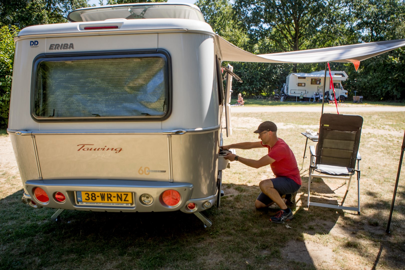 Suzan en Henk zwaaien ons uit als we voorzichtig onze eerste verkeersdrempel nemen. Het rijden gaat vlot, al ben ik er nooit helemaal gerust in. Wat als dat aanhangsel van 1.008 kilo achter me begint te slingeren? Of loskomt van de trekhaak? Maar dat gebeurt gelukkig niet en een uurtje later rijden we camping De Lievelinge in het dorpje Vuren op.