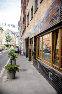 Via de groene gordel wandelen we in oostelijke richting, recht de armen van het Belgisches Viertel in. Daar verwonderen de kinderen zich over de vertrouwd aandoende straatnamen: van Brüsseler Platz tot Antwerpener Strasse. De sfeer in de Belgische wijk is cool van het iets blitzere type, minder DIY dan Ehrenfeld. We wagen ons aan de hallucinant uitgebreide limonadekaart van Hallmackenreuther, dat huishoudt in een authentiek pand uit de jaren 60. De vrolijke bar-met-restaurant is al sinds de jaren 90 een instituut in Keulen en een favoriete plek voor nachtuilen en doorzakkers. Er zijn filmvoorstellingen, concerten en afterparty’s in de kelder. Gelukkig kan je hier ook overdag terecht en zoals wij, een kardemom-pruim of een lavendel-citroenlimonade achteroverslaan na een lange dag flaneren.