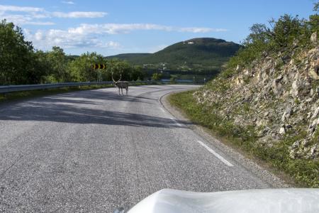Daarna maken Marc en Linda kennis met het Hoge Noorden. ‘We zagen de eerste rendierkuddes. De dorpjes liggen er verder uit elkaar. De natuur wordt ruiger en onherbergzamer’, vertelt Marc. ‘Dan neem je het best het zekere voor het onzekere. Dat betekent tanken en voorraad inslaan als de gelegenheid zich voordoet. Boven Mo I Rana passeer je de poolcirkel. Daar gaat tussen mei en juli de zon niet meer onder. Ook dat is een aparte belevenis. Op vakantie raak je dan wel eens elk besef van uur en tijd kwijt.’