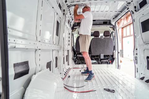 Gewapend met een doos vol kabels begin ik aan het werk. Voor ik start, heb ik de hele handleiding uitgeprint - dat werkt voor mij overzichtelijker. De tekeningen en uitleg in de handleiding maken duidelijk wat er moet gebeuren. Hoewel kabels trekken niet bepaald een ontspannen zondagsklusje is, zorgt het wel voor een goede workout… Bij het ombouwen van een lichte vrachtwagen naar een camper is het correct aanleggen van elektriciteitskabels cruciaal. De eerste stap is de planning, waarbij je de elektrische behoeften van de camper bepaalt, zoals verlichting, stopcontacten, keukenapparatuur en eventuele speciale uitrusting zoals verwarming. Het gedetailleerde schema van de Vantast houdt rekening met de locatie van elk apparaat en het traject van de kabels. Het juiste type en dikte van de kabel kiezen, eventueel door een flexibele buis trekken en de voorgeschreven route volgen volgens het plan, zijn essentiële stappen. De kabeldikte is afhankelijk van de stroomsterkte die de apparaten vereisen, wat nodig is om te voldoen aan de veiligheidsnormen.