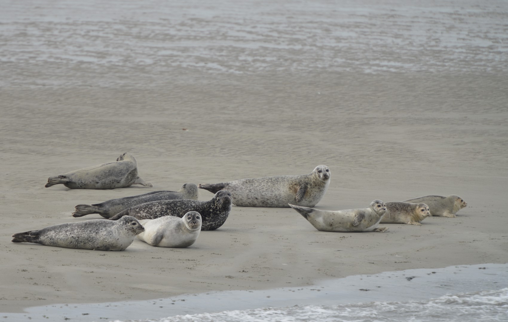 We stoppen bij een hokje aan de voet van de dijk en turen door een gleuf naar de plassen van het natuurgebied Südstrandpolder. Het terrein werd in de oorlog door de nazi’s ingedijkt en opgespoten voor de aanleg van een militaire luchthaven, die er nooit zou komen. Later heroverde de natuur het gebied en ontstond een uniek drasland, waar tientallen vogelsoorten broeden.