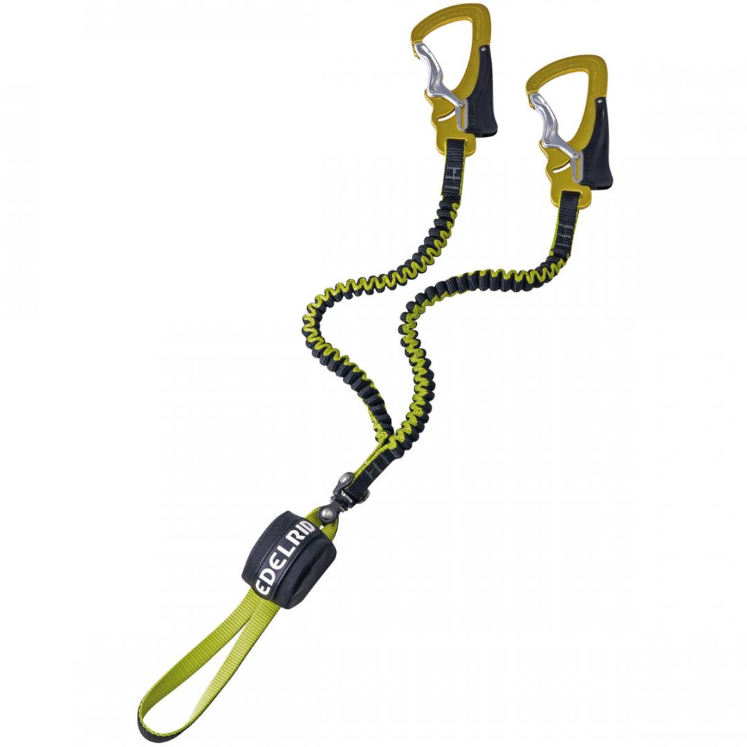 handschoenen en klimgordels. Over zijn schouder hangen onze Klettersteigsets, voor ieder twee elastische touwen - Schlingen noemt hij ze - met een ‘remblok’ om een eventuele val te breken. Cruciaal voor onze veiligheid en verplicht bij elke klim.
