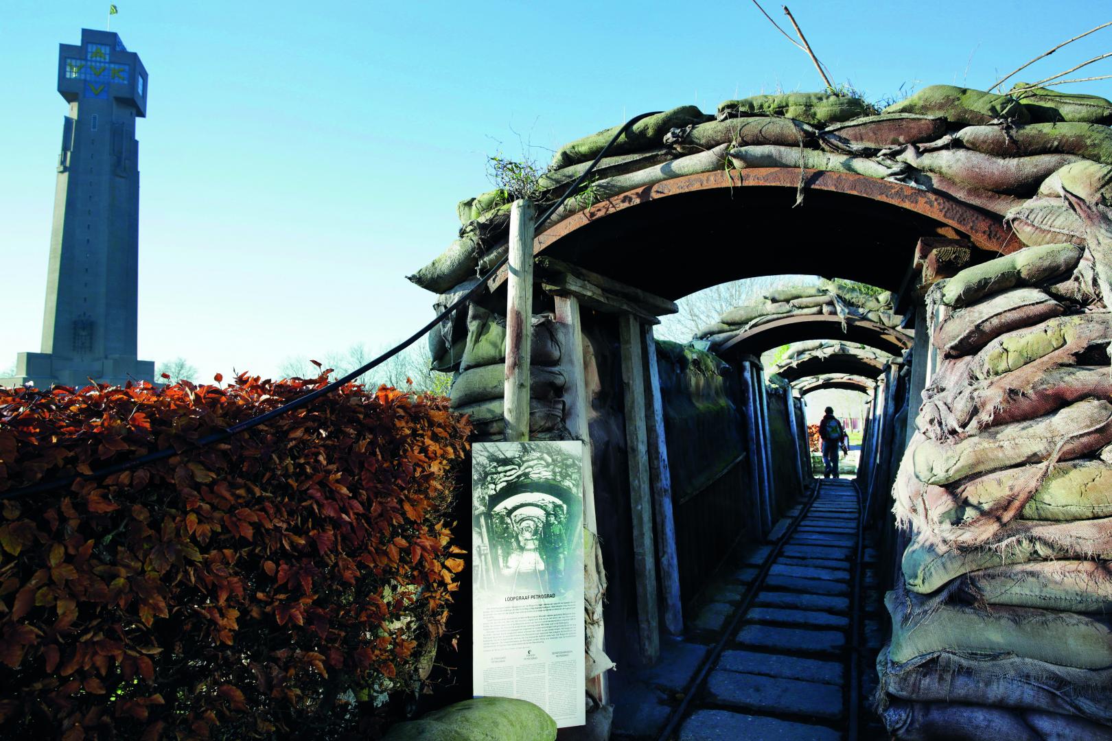 Dood in de Dodengang Wat dat precies inhield, ervaren we aan den lijve in de Dodengang. Het is een bewaard stelsel van Belgische loopgraven op de linkeroever van de IJzer. In de hoeve Van Heule aan de andere zijde van de IJzer – letterlijk op een steenworp – zaten Duitse scherpschutters. Vier jaar lang.