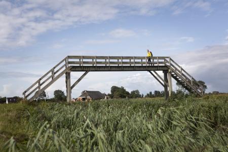 Zo’n duizend jaar geleden werden in Nederland, dat een eeuwige strijd voert met het oprukkende water, de eerste dijken gebouwd. Vandaag is het Hollandse landschap onlosmakelijk verbonden met dijken, sluizen en kanalen. In Groningen is dat niet anders. We beklimmen de trappen van het gele kerkje van Hornhuizen om vanuit de torenspits de Westpolder, zoals deze streek heet, te overschouwen. In de verte ligt de Waddendijk, met daarachter de kwelders: begroeide stukken land die direct aan de zee grenzen, en nog regelmatig onder water lopen. Ze zijn de ideale voedingsbodem voor zilte planten én een geliefkoosde rustplek voor vogels. Eén van de beste plaatsen om de kwelders te overschouwen ligt twintig kilometer verderop: Noordpolderzijl, het uiterste puntje van Groningen en de kleinste getijdenhaven van Nederland. Alleen bij hoogwater kunnen hier schepen binnen varen. Vanop de dijk heb je een weids zicht over het wad. Wie dit natte landschap van dichtbij wil ervaren: wandelknooppunten genoeg om in de streek een tocht uit te stippelen. Wie liever fietst, kan ‘Kiek over Diek’ volgen, een 90 kilometer lange fietsroute dwars door het Waddengebied. Je fietst over dijken en langs graanvelden, en kruist ook de historische sluis in Noordpolderzijl.