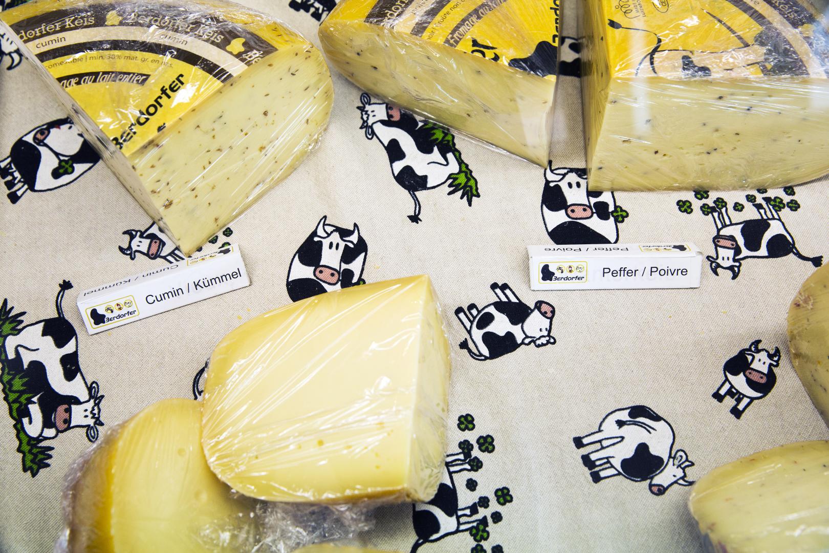 Vlak naast het kerkje ontmoeten we Monique Schmalen in het kleine kaaswinkeltje Berdorfer. Als dochter van een kaasboer houdt ze nu mee het familiebedrijf draaiende. ‘Alle melk die we verwerken is van eigen productie’, lacht ze trots een kuiltje in haar wang. Enkele kilometers verderop bij Hammhaff heeft de familie een boerderij. ‘We hebben vijftig koeien en een heleboel schapen. De melk komt naar hier en achterin verwerken we alles tot kaas en yoghurt. Sinds tien jaar maken we ook geitenkaas en nu verkopen we ook twee soorten ijsjes van geitenmelk’, vertelt Monique.