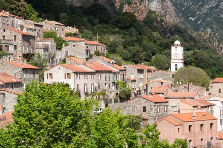 ‘s Avonds stop ik in Évisa, een heerlijk bergdorp, omringd door eeuwenoude kastanjebomen. Het lijkt zo uit de strip Asterix op Corsica geplukt. Smalle steegjes en steile trappen, een kerkje, een handvol restaurants en bars, de geur van gebraden everzwijn in de straatjes. Zelfs de oude mannetjes uit het stripverhaal ontbreken niet op de afspraak, al zitten ze niet met een kruk op de bank, maar in de bar, verscholen achter een pastis.