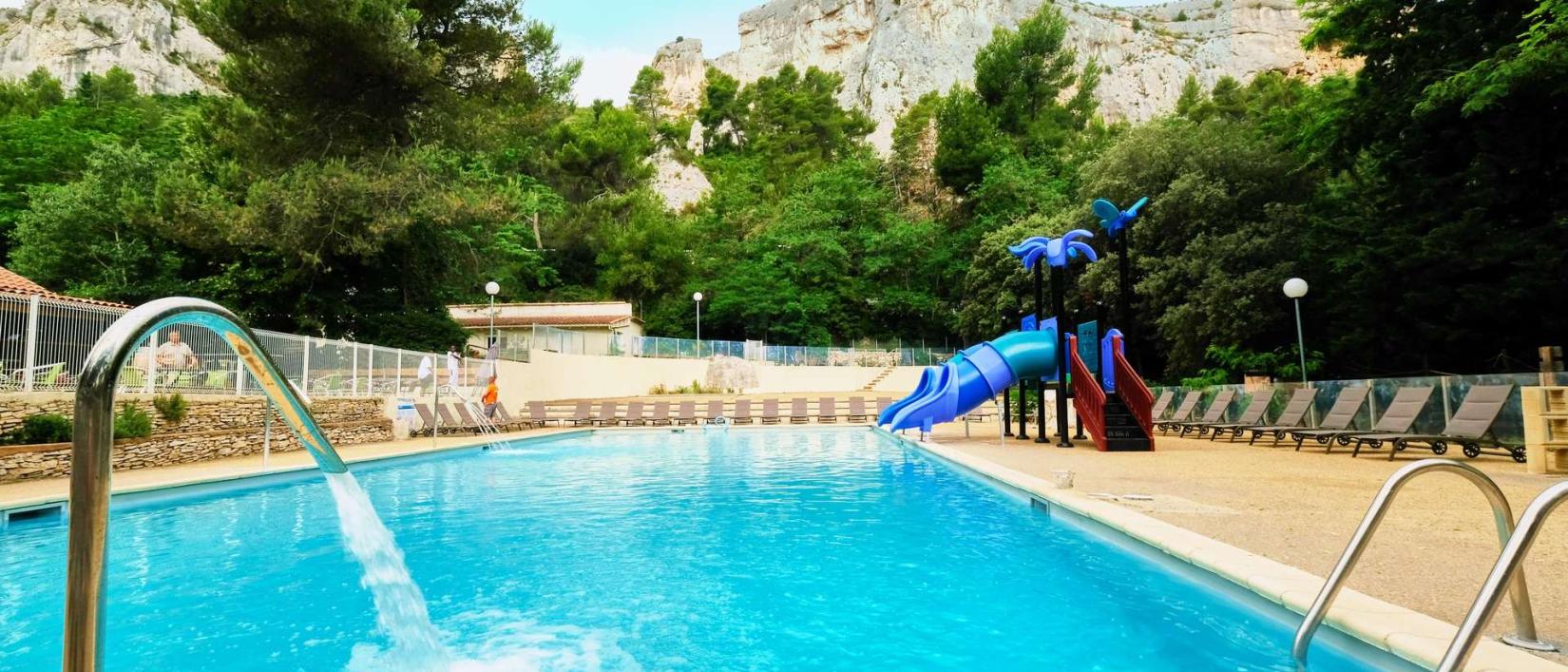 De camping en het naastgelegen meer worden omringd door het Massief des Alpilles, wat direct voor een mooi uitzicht zorgt. Aan het meer is een klein kiezelstrand. Zwemmen en bijvoorbeeld vissen zijn mogelijk in het water. De krijtrotsen in de omgeving lenen zich goed voor een klim- en/of wandeltocht voor sportievelingen. De camping verhuurt bungalows en twee groepsgîtes. Tandemassers en campers met een lengte vanaf 8 m zijn verboden.