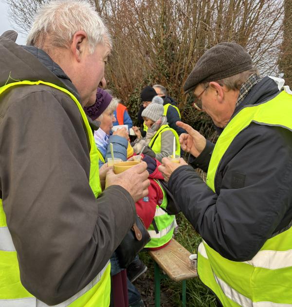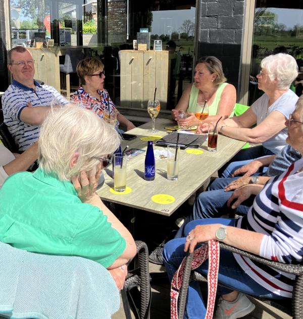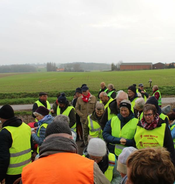 Op de foto vlnr Mariette Hoorelbeke, Francis Decaesteker, Antoon Verstraete, Monique Behaeghel, Carine Alleweireldt, Brigitte Bertier, Joseph Van Ostaeyen.