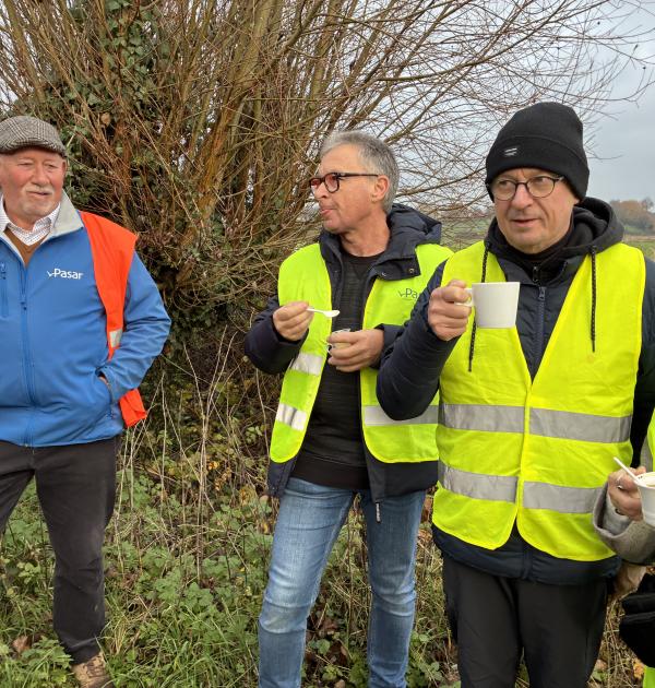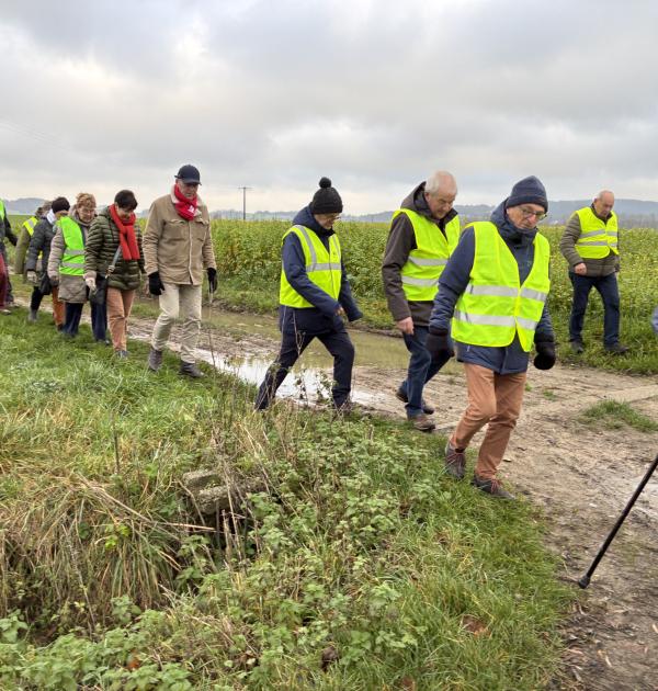Op de foto vlnr Mariette Hoorelbeke, Francis Decaesteker, Antoon Verstraete, Monique Behaeghel, Carine Alleweireldt, Brigitte Bertier, Joseph Van Ostaeyen.
