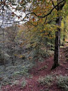 Onderweg naar het zuidoosten van het bos wisselen de dikke beuken en eiken en de open plekken bedekt met gele, bruine en oranje bladen elkaar af. Een klein stukje loopt langs de Natuuroase van Heverleebos, waar je het Japanse fenomeen van bosbaden, ofwel Shinrin-yoku, kan ervaren. Het idee is om traag te wandelen, al je zintuigen te activeren en zo je lichaam en geest tot rust te brengen. Ik voel de wind over een open vlakte blazen, zie de roestbruine heidebloemen en ik hoor de modder onder mijn zolen pletsen. Eigenlijk is het hele wandelweekend een oefening in Shinrin-yoku. Herfst in het bos is namelijk een feest voor de zintuigen: een donker dennenbos voelt extra donker, de natgeregende grond ruikt extra fel en de eikels en kastanjes vallen opgewekt op de grond.