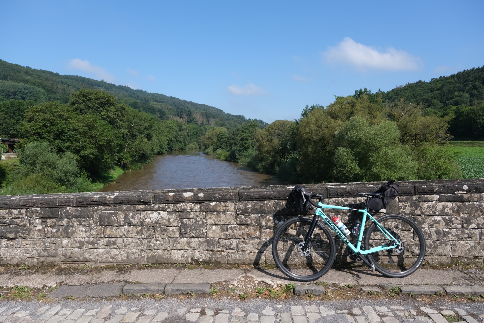 De volgende ochtend is het hoogzomer. Ik beslis om mijn ronde uit te breiden met een rit down memory lane. 35 jaar geleden fietste ik naar het kasteel van Vianden. Dat kan ik bereiken door vandaag een extra lus van 40 km te rijden. Heen via Duitsland, terug via Luxemburg. Vanaf nu tot in Schengen markeren rivieren de landsgrens. Ik steek de oude stenen brug van Dillingen over, klim naar de heuvels en zie in de diepte de campings langs het water liggen. Het kasteel van Vianden troont al duizend jaar op zijn rots boven de Our. Ik fiets de steile helling op naar de kasteelpoort, pauzeer daarna op de rivierpromenade in het stadje en vat uiteindelijk de terugweg aan. De vallei is breder aan Luxemburgse zijde. Weilanden vol bloemen bekleden de heuvels.