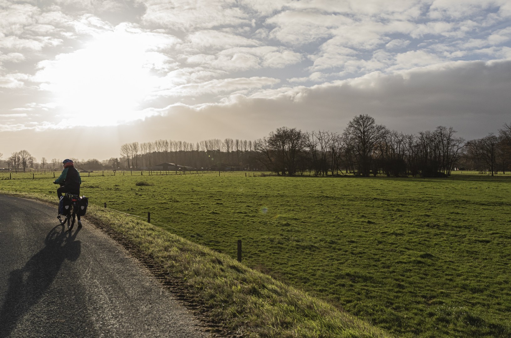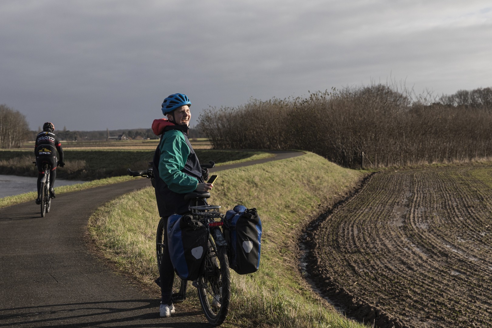 De volgende uren zijn puur genot. De afstand die we overbruggen is haast verwaarloosbaar - een schamele tien kilometer - maar we stoppen zowat elk kwartier om rond te kijken, foto’s te nemen of kort een klein wandelweggetje in te slaan. Het begint in Cassenbroek, waar we spontaan willen beginnen rijmen over verdronken bomen. Duizend jaar geleden stroomde hier de Demer, die nu veel vroeger - al in Werchter - samenvloeit met de Dijle. De meander van de Demer verdween, het water bleef, waarna een dikke veenlaag zich vormde. Het natte landschap zet zich verder in Mispeldonk, nog een natuurgebied waar open weidelandschappen, vochtige loofbosjes en zelfs heide elkaar afwisselen. Met onze fietsen kunnen we niet diep in het gebied, maar zelfs langsrijden is een plezier. Cassenbroek en Mispeldonk vormen samen met Mechels Broek één groot, groen netwerk in de Beneden-Dijlevallei. Een lappendeken van kronkelende sloten, modderige paden en zompige grasvelden die herinneren aan een verleden vol water, toen hier het natuurlijke overstromingsgebied van de Dijle was. De zon zakt stilletjes neer terwijl we over het mooiste weggetje rond Mechelen - de Muizenhoekstraat - terug richting Muizen fietsen. We zijn omringd door knotwilgen, die al eeuwenlang nergens beter thuishoren dan hier. Rechts van ons strekt het Mechels Broek zich uit, met haar vijvers en vogelijkhutten. In Het Brughuis warmen we op boven een dampend bord spaghetti. Stamgasten waaien binnen, buiten valt de avond, terwijl onze wangen gloeien van de brandende stoof. De lus is rond - en wij moe maar tevreden.