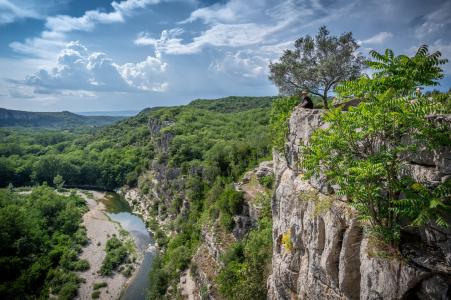 Tuk op nog meer spectaculaire panorama’s? Wandel dan even naar de ‘hangende tuinen’ buiten het dorp. Vandaag vind je er een paar niet zo spectaculaire terrassen met vijgenbomen en lokale planten achter de polyvalente zaal van het dorp, in de 19de eeuw aangelegd om er groenten en fruit te telen. Het zicht vanaf die tuintjes is echter de omweg waard. Hoog boven de Baume laten de kliffen de Ardèche op zijn groenst en zijn puurst zien. Wel even over de nudisten aan het water heen kijken… We keren terug naar Ruoms langs de rechteroever.