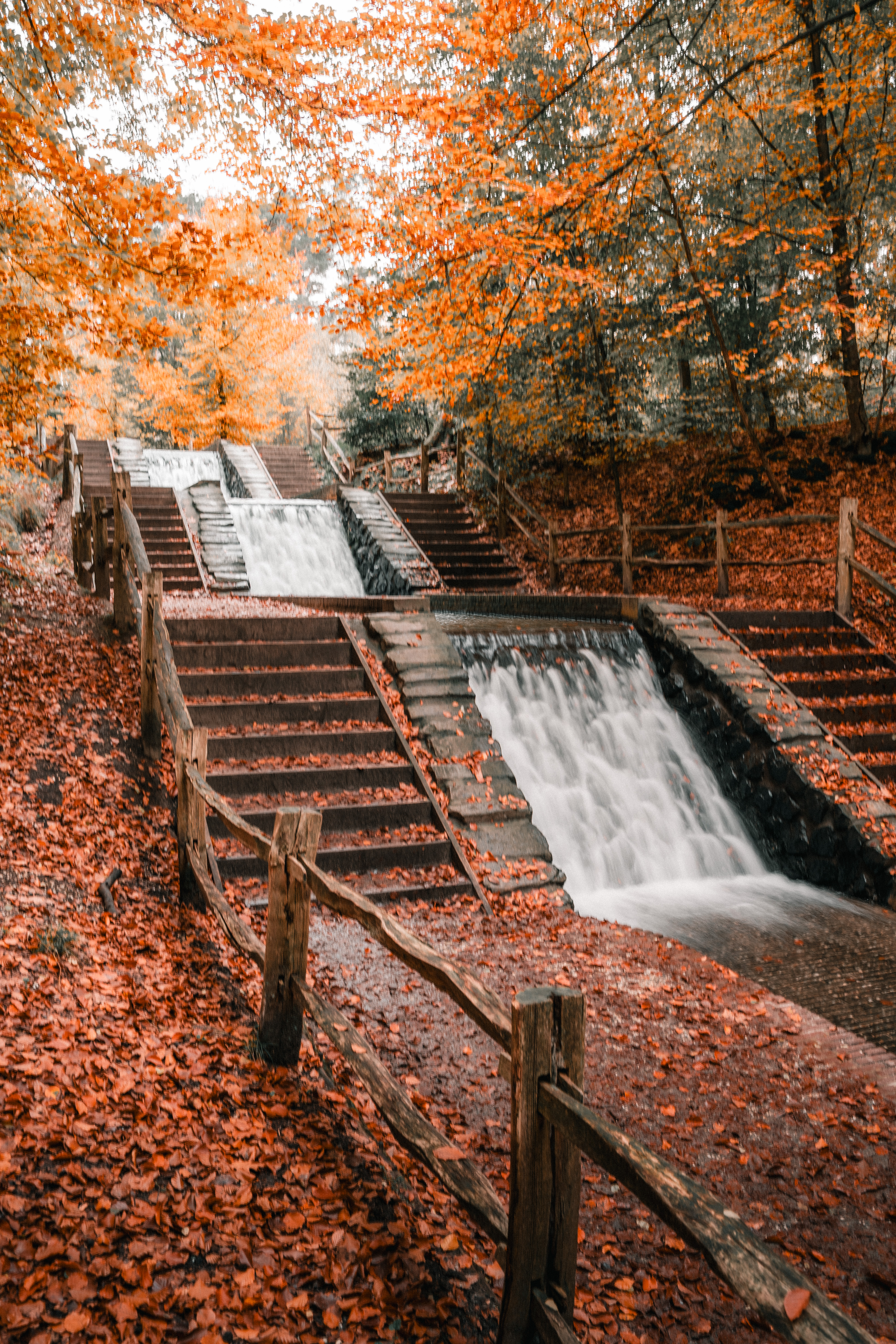 In de namiddag wandel ik verder naar de Loenense Waterval. ‘De hoogste waterval van Nederland’ klinkt indrukwekkender dan wat ik ter plekke aantref. Het beekje dat ik al een kilometer volg, maakt trapsgewijs een afdaling van een meter of vijftien - al lijkt zelfs dat wat optimistisch. Het is geen natuurwonder, maar door de heldere herfstkleuren krijgt de plek toch iets charmants. Ik maak snel een foto en zet mijn tocht voort.