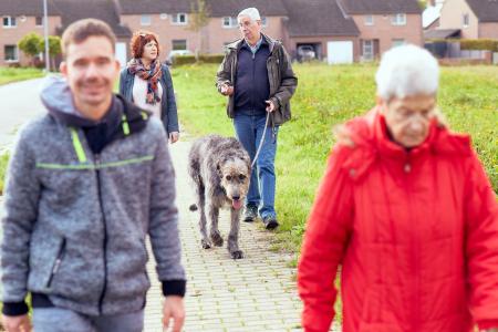 Theo: ‘Zeker! Meteen vormde zich een groepje van een man of tien. Sommigen konden niet zo goed stappen en werden in een rolstoel geduwd door anderen. Of nog anderen liepen met een rollator. Er lopen vaak ook andere vrijwilligers, medewerkers van het dienstencentrum of gewoon buurbewoners mee. Dat is ook het concept: samen iets doen, de buurt verkennen, sociaal contact en bewegen. We wachten op elkaar onderweg en rusten uit op een bankje als het nodig is. Het is echt fijn, er worden grapjes gemaakt, er wordt soms zelfs gezongen! Mensen komen uit hun flat, gaan wat verder dan hun gebruikelijke route, zien iets nieuws onderweg en hebben weer wat om samen over te praten. We passeren soms een ezel, de paardenweide, de alpacaweide, heel leuk. Dit project is heel laagdrempelig, veilig, gezond, sociaal, verbindend… Het is zo mooi om een bijdrage te mogen leveren.’
