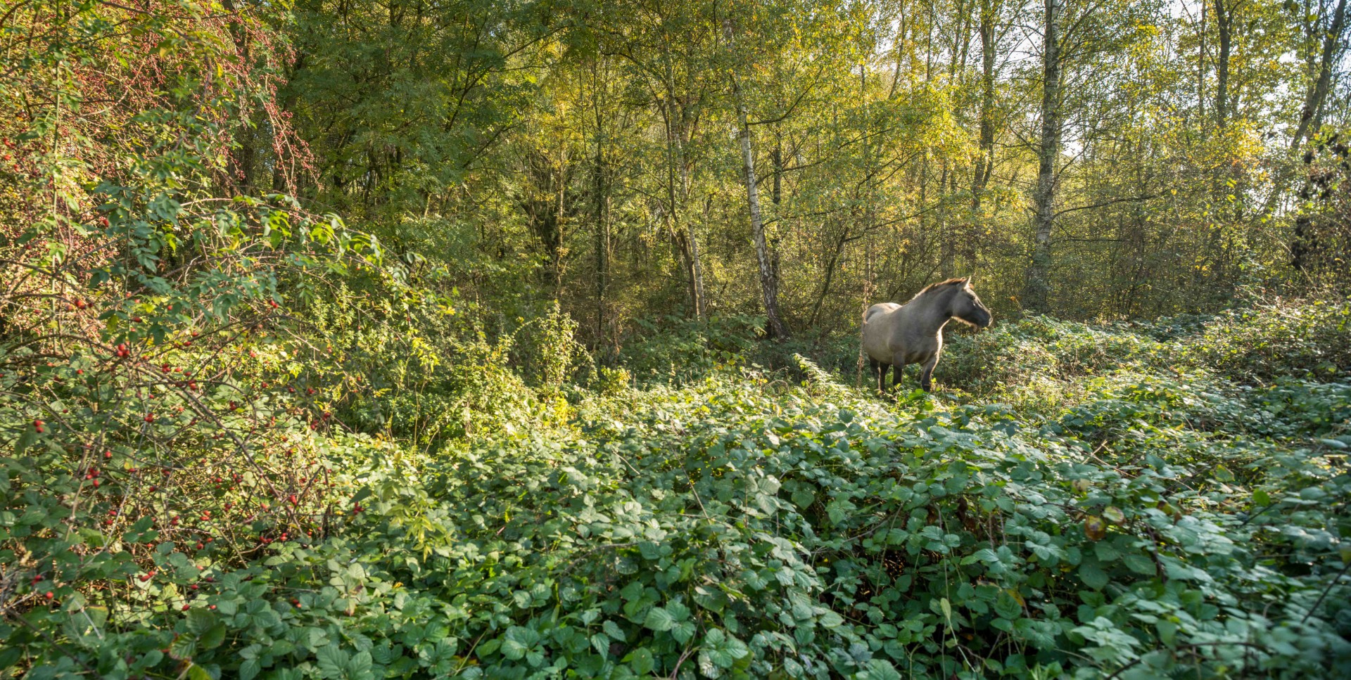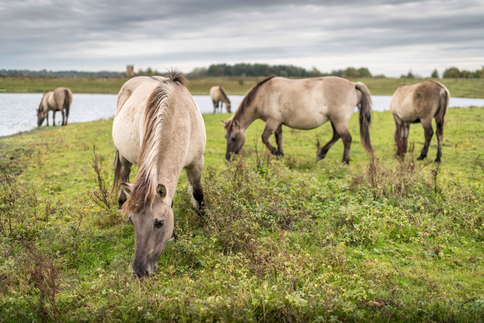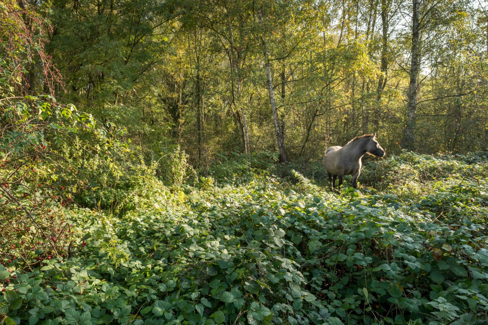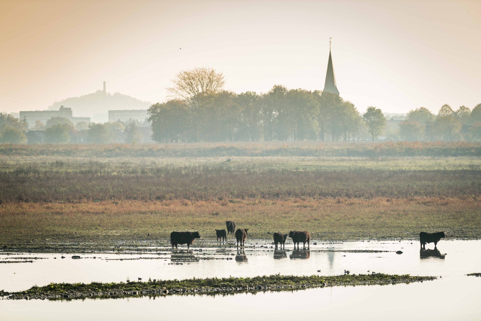 Verderop grazen konikpaarden en gallowayrunderen. Met hun vraatgedrag houden ze het landschap halfopen. Reeën schuilen tussen de kudde voor wolven, putters en dwergmuizen pikken zaden uit de ruigte, en kauwen plukken winterhaar voor hun nest. Zelfs hun mest speelt een rol - zonder ontwormingsmiddelen wemelt het er van de larven, wormen en kevers. Gevolg: een rijk bodemleven. Zonder deze grazers geen stekelige broedstruiken voor zwartkoppen, geen kuilen vol pioniersplanten, geen brede bosranden waarin grauwe klauwieren jagen. Het zijn de architecten van de Maasvallei, de onbezongen helden van een landschap in beweging.
