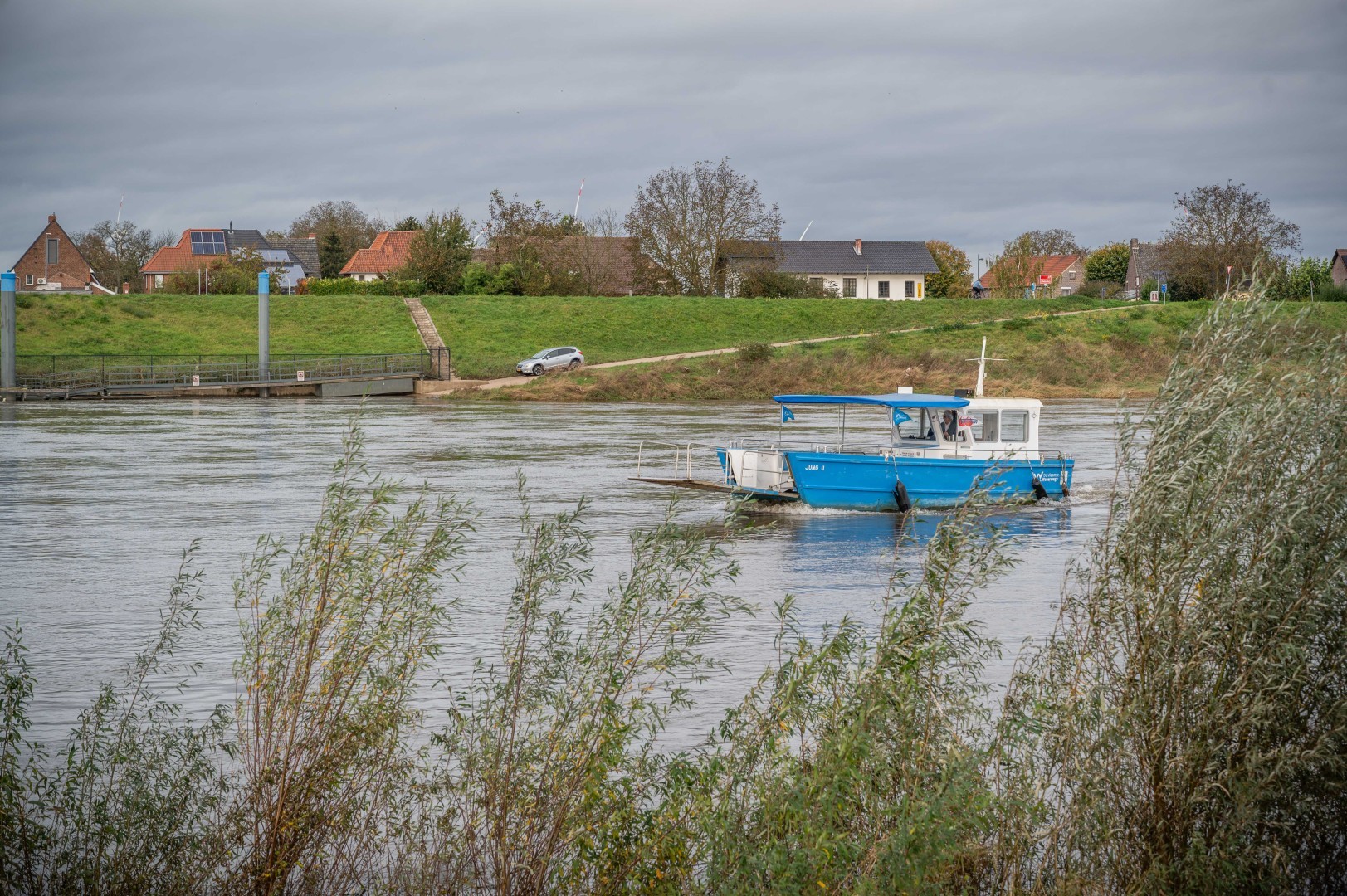 We moeten niet aan de overkant zijn, maar schepen voor het plezier toch in voor een retourtje met het veerpont. Veerman Frans is een figuur uit een stripverhaal: gouden ketting rond de hals, sigaretje in een mondhoek, stuurse blik. Zeebonken lachen niet. Gelukkig is Frans iets spraakzamer dan zijn collega van een dag eerder. Hij doet dit al tien jaar, voordien werkte hij op een écht schip - net als zijn vader en z’n grootvader. ‘Rustgevend is dat water wel, maar niet als je op een dag duizend mensen moet overzetten’, gromt hij. Bij hoog water varen de veren niet uit, vertelt hij. Niet zozeer omwille van het gevaar op het water - Frans is het ruime sop gewoon. Wel omdat de aanlegsteigers op de oevers dan onder water komen te staan.
