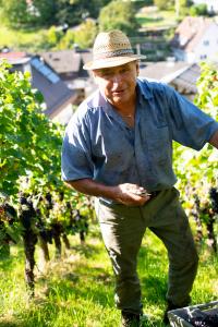 Het Schloss Ortenberg – uiteraard een wijndomein – kijkt uit over de wijngaarden en kapelletjes langs de Offenburger Weinwanderweg, een educatieve panoramaweg van 9 km. 80 procent van de druiven op deze soms flinke hellingen zijn riesling, want we zijn hier in Ortenau alweer een stukje dichter bij de Moezel. In het dorpje Zell-Weierbach treffen we een bucolisch tafereel: de oogst is begonnen. Op een steile helling knippen jong en oud, elk in een rij, de spätburgunder. Een wagentje met rupsbanden rijdt de bakken vol blauwe druiven omhoog, waar ze omgekiept worden. Enkele oudere heren babbelen gezellig onder het behendig knippen. Ze laten nogal wat trossen achter, waar nog groene druiven tussen zitten.