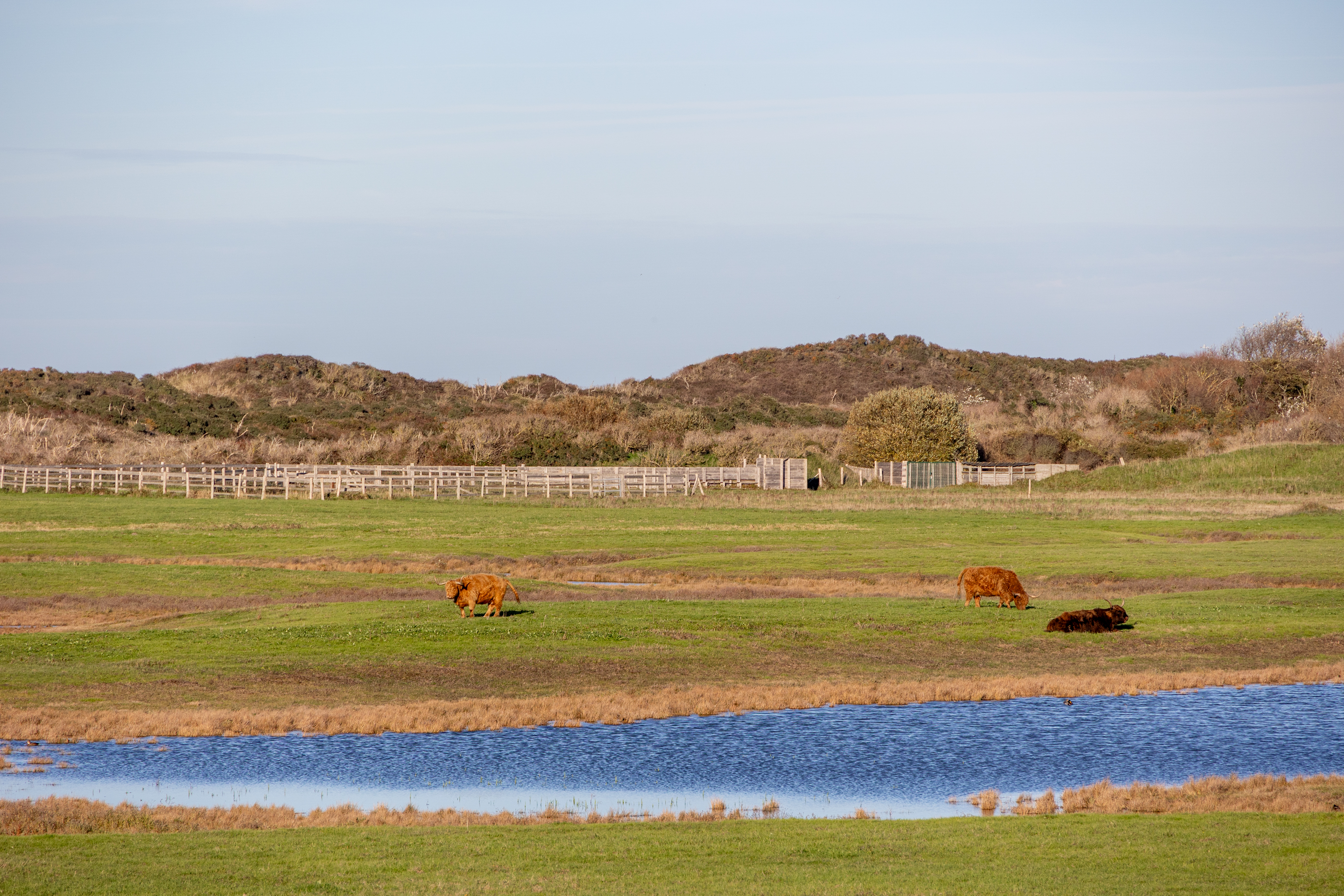 Zodra je de grens over rijdt, lijkt het landschap zelf op adem te komen. Net voorbij Oye-Plage opent de wereld zich in een rustige breedte. De Réserve naturelle nationale du Platier d’Oye ligt daar als een onverwacht geschenk, een mozaïek van slikken, schorren, natte weiden en lage duinen die het ritme van de kust opnieuw uitleggen. Op de parkeerplaats wacht Marie Delamaere ons op. Terreinbeheerder, met de bevoegdheid van een politieman, met die zachte manier van spreken die mensen hebben die de natuur beter kennen dan ze zelf beseffen. Ze begroet ons in verrassend verzorgd Vlaams, een echo van haar grootmoeder, en neemt ons mee het gebied in. Meer dan tweehonderd vogelsoorten gebruiken dit reservegebied als tussenstop tijdens hun trek, het is een tafel die altijd gedekt staat. In de lage graslanden lopen hooglandkoeien en pony’s die zorgen voor de begrazing zodat trekvogels ruimte vinden om te landen. De stilte is hier nooit stil. Af en toe passeren gendarmes op de dijk, alert maar rustig. Verderop lag ooit een groot deel van het vluchtelingenkamp van Calais. Vandaag zie je er niets meer van, maar Marie zegt dat het verhaal nooit volledig verdwijnt, tekenend voor een kust die tussen twee werelden in ligt.